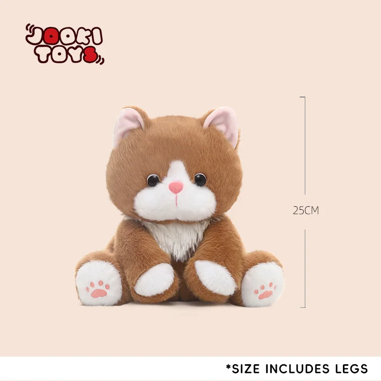 - What is the size of the plush cat? It is a cozy size, perfect for little hands to hold and cuddle.